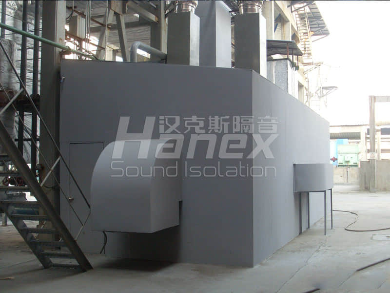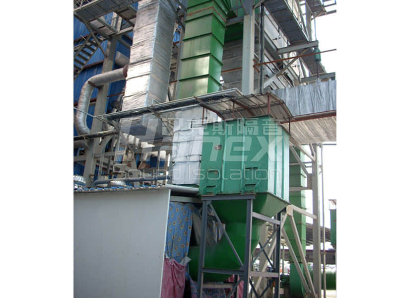 嘉興富林化纖有限公司75T/H循環(huán)流化床鍋爐配備一臺(tái)一次風(fēng)機(jī),進(jìn)出風(fēng)口噪聲分別高達(dá)94.4dB(A)、100.1dB(A)。漢克斯隔音采用了在進(jìn)出風(fēng)口安裝消聲器并對(duì)其整體設(shè)置隔聲罩的方式進(jìn)行了治理,治理后在隔聲罩1米處量的噪聲值為80dB(A)(未排除其他設(shè)備噪聲)