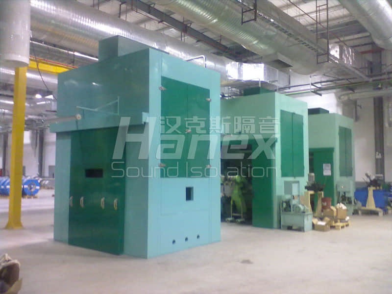案例簡介:廠區(qū)車間內(nèi)有三臺沖床,用于生產(chǎn)汽車零配件,單臺沖床運(yùn)作時(shí)噪聲值在96dB(A),影響較大。漢克斯隔音對三臺沖床分別增設(shè)了隔聲罩后,在隔聲罩1米處量的噪聲值為76dB(A)(單臺)。隔聲罩內(nèi)設(shè)有通風(fēng)散熱等性能,不影響設(shè)備本身使用。