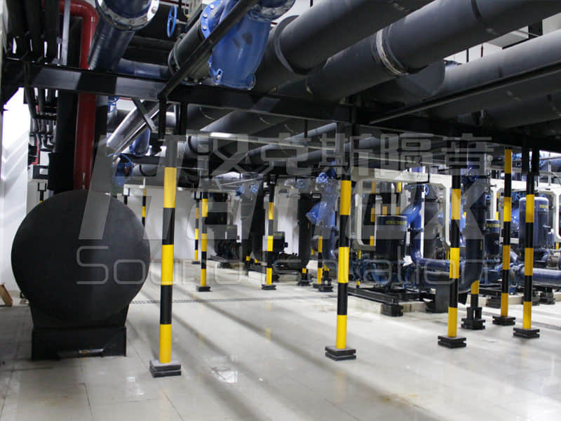 紹興人民醫(yī)院地下水泵房內(nèi)的冷凝機組噪聲過大,影響周邊醫(yī)院區(qū),尋求冷凝機組降噪處理,杭州漢克斯隔音技術(shù)工程有限公司針對該項目進行了冷凝機組減震、水泵減震、管道彈性支撐減震等方式解決振動噪聲問題。