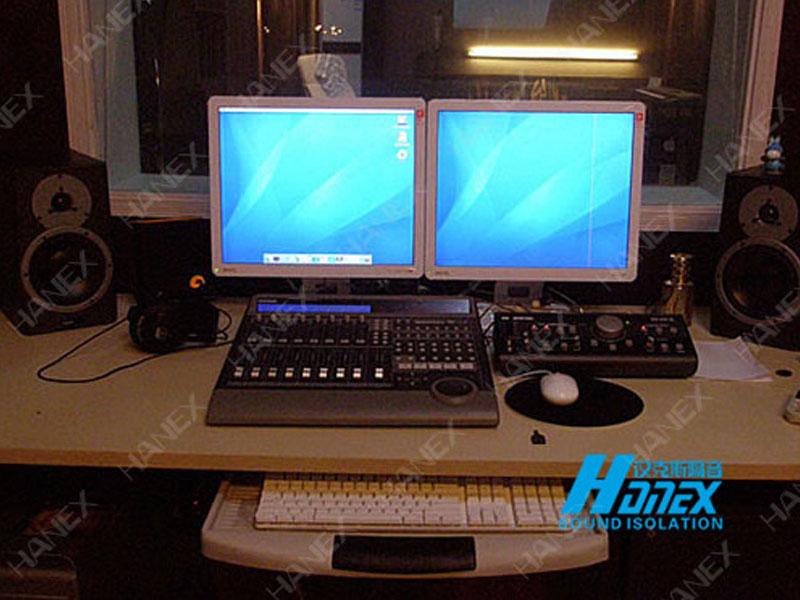 1.控制室與錄音室分隔降噪,中間分隔墻體隔聲同時(shí)安裝密封可視玻璃